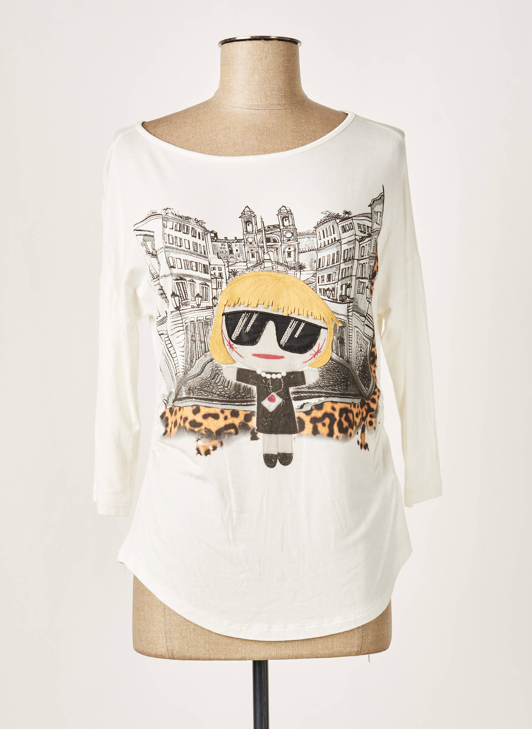 Tricou Eleonora Amadei Alb Mâneci 3/4