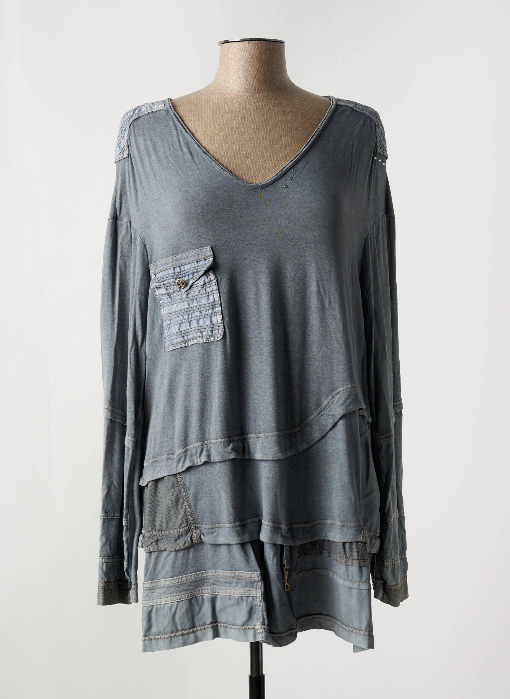 Tricou Elisa Cavaletti Gri Mâneci Lungi