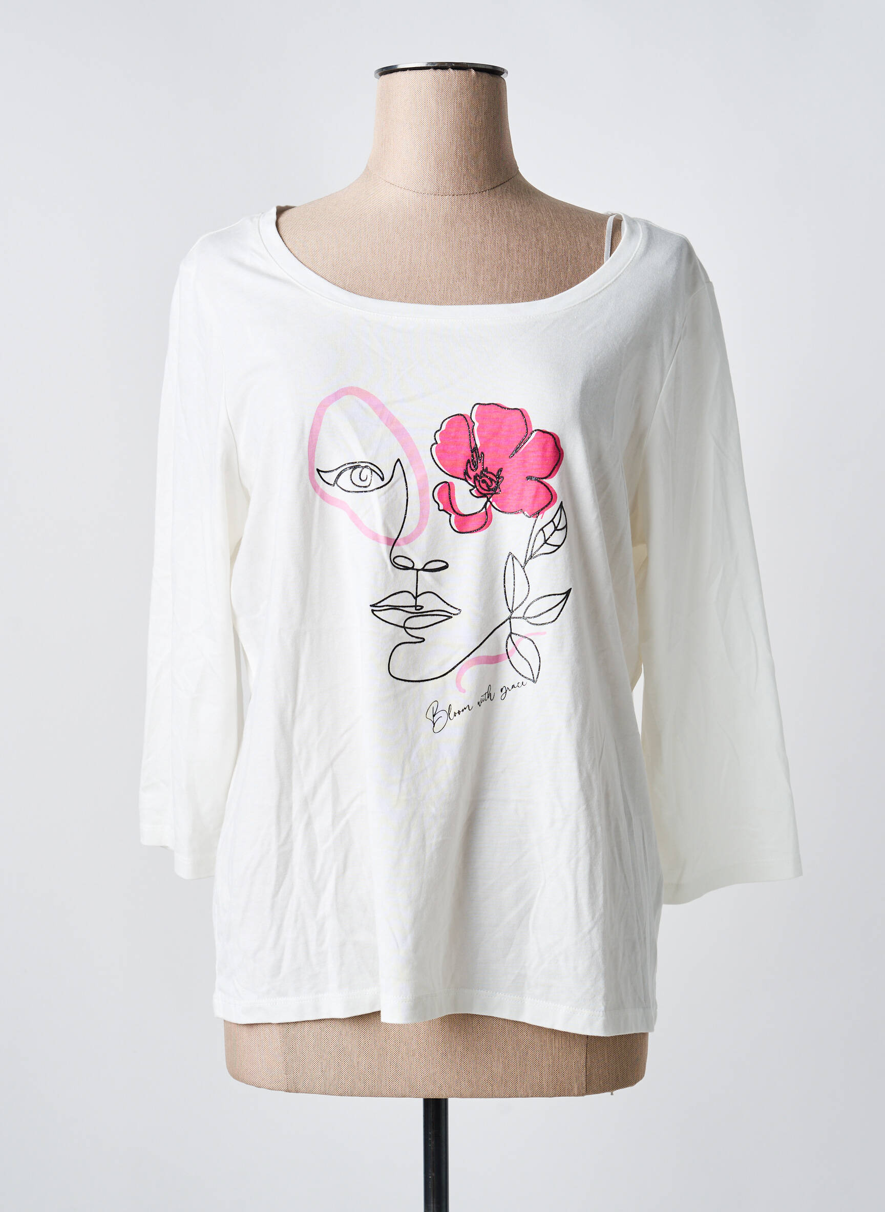 Tricou Julie Guerlande Alb Mâneci 3/4