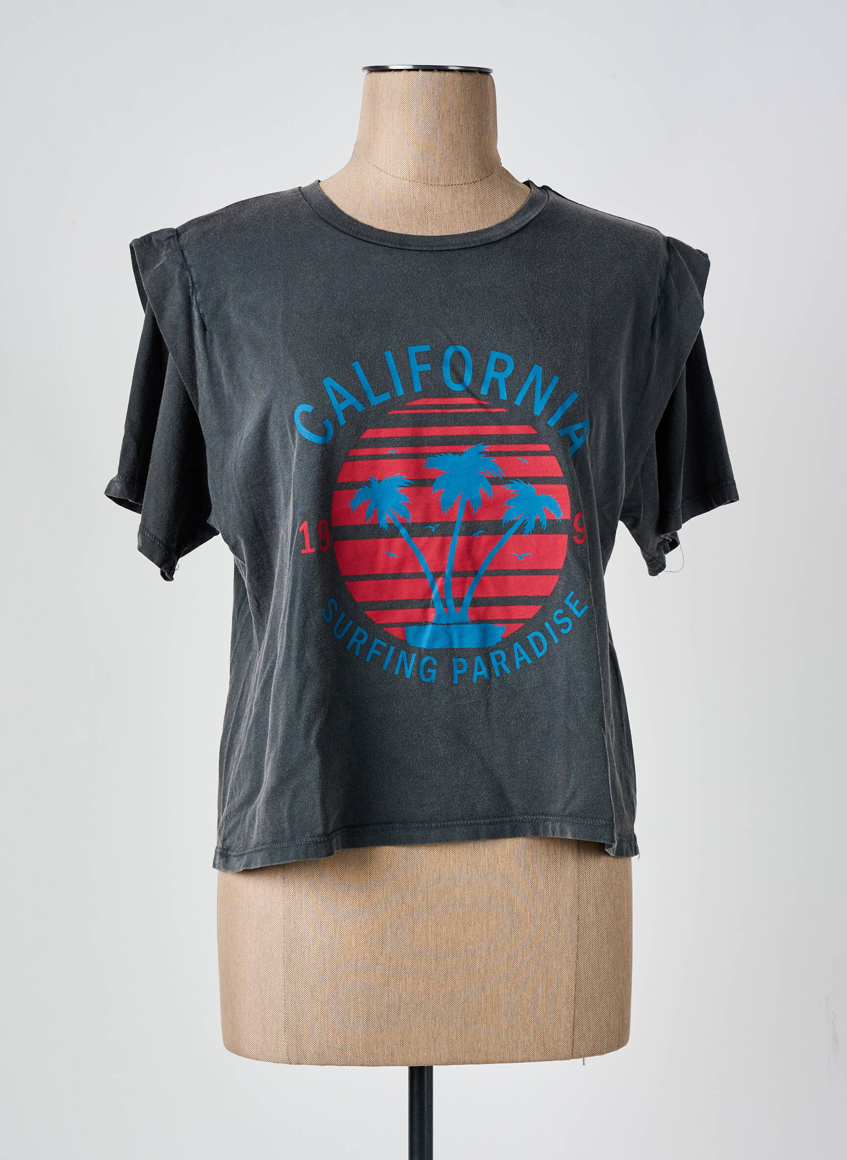 Tricou Pieces Gri Mâneci Scurte