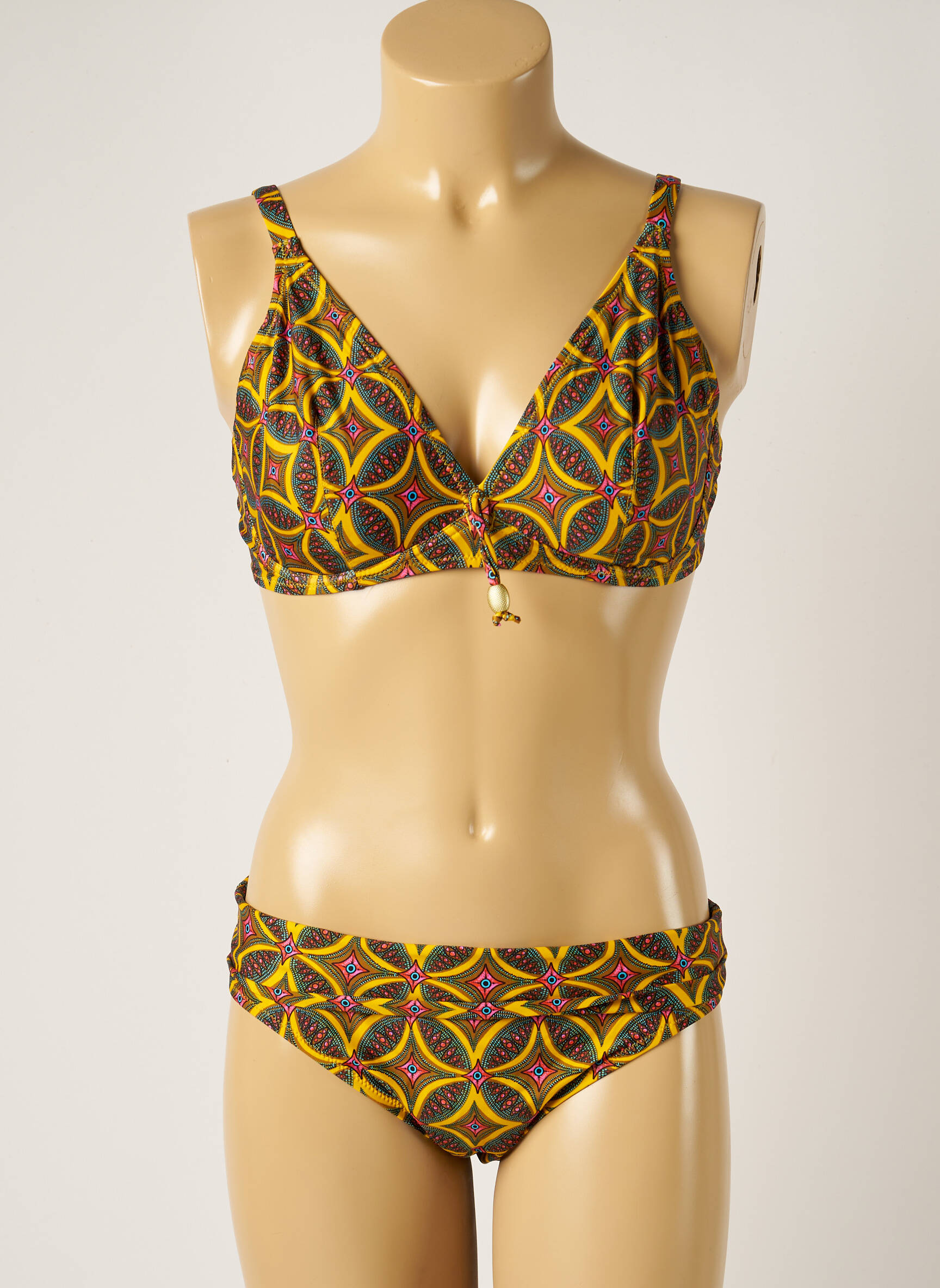 Costum De Baie Din Două Piese Antigel Galben Sutien Cupe Întregi Cu Decolteu Înalt