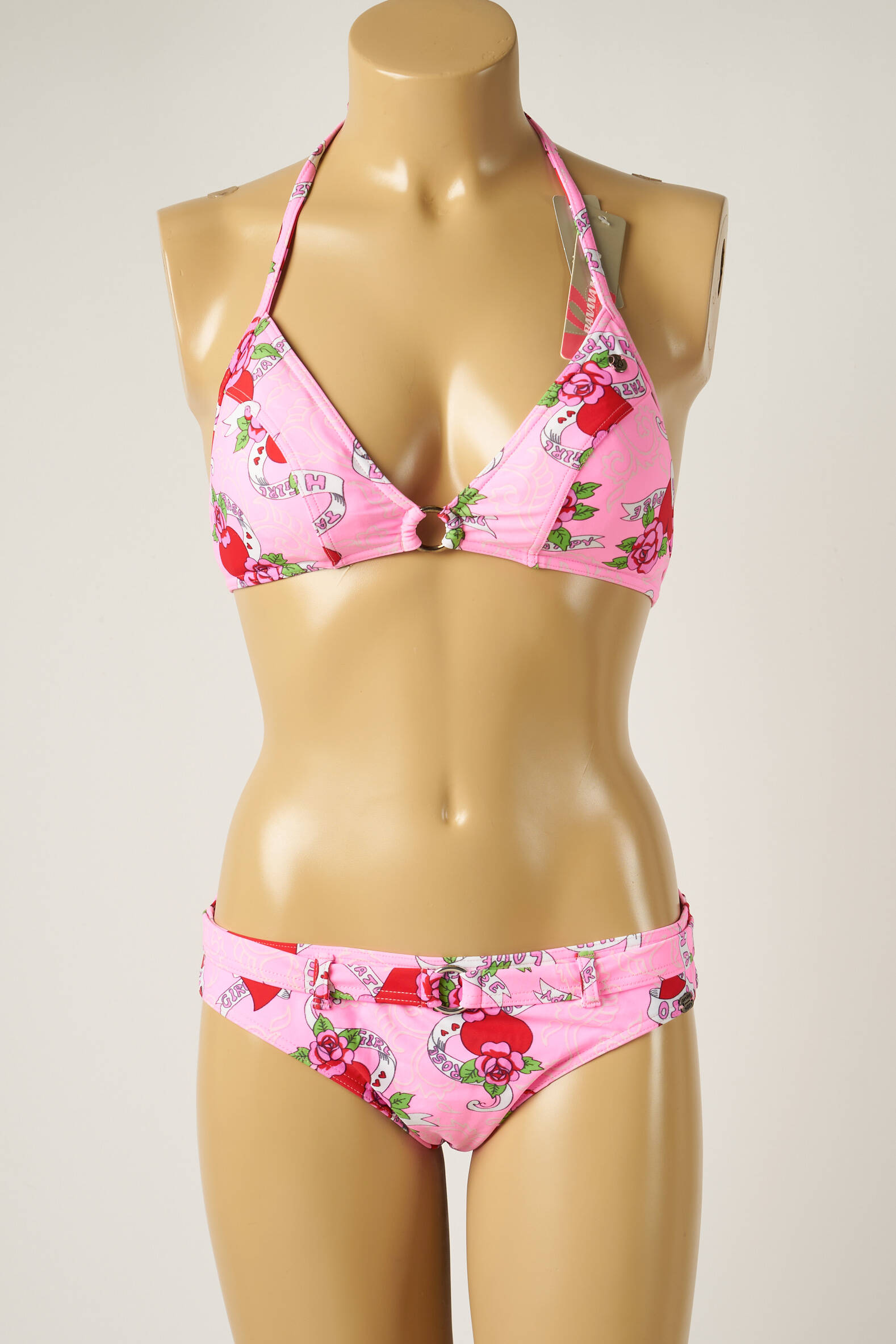Costum De Baie Din Două Piese Banana Moon Roz Sutien Balconet Cu Decolteu Înalt