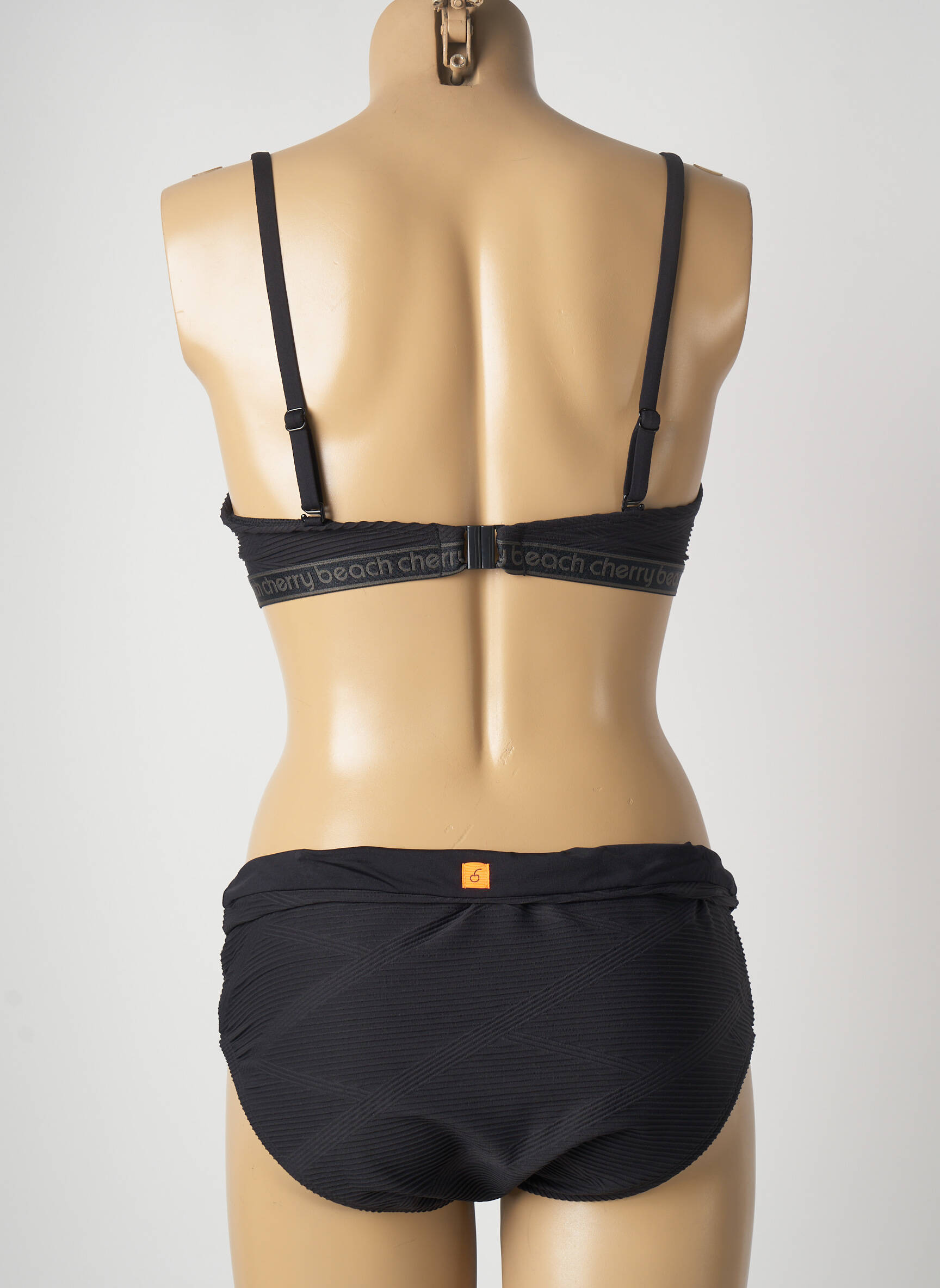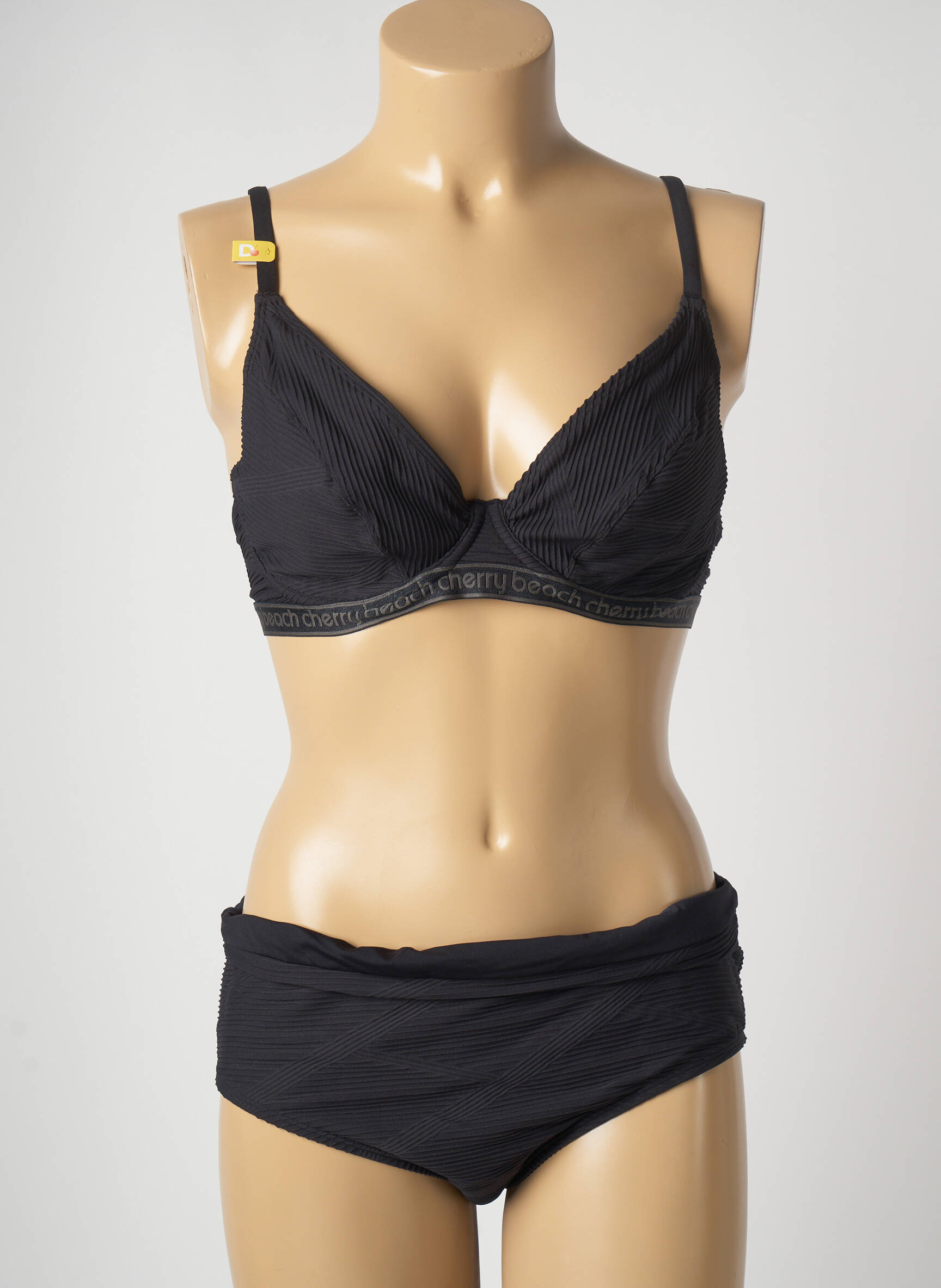 Costum De Baie Din Două Piese Cherry Beach Negru Sutien Cupe Întregi Cu Decolteu Înalt