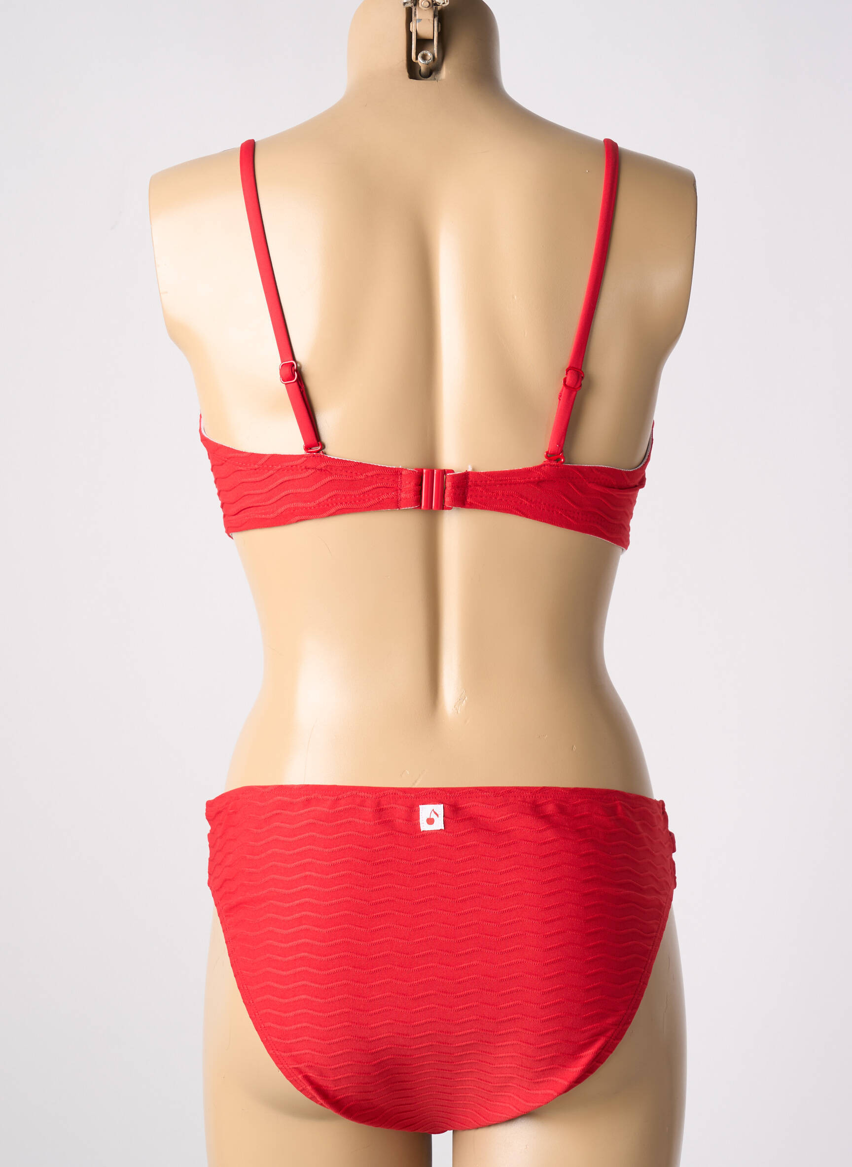 Costum De Baie Din Două Piese Cherry Beach Roșu Sutien Balconet Cu Decolteu Înalt