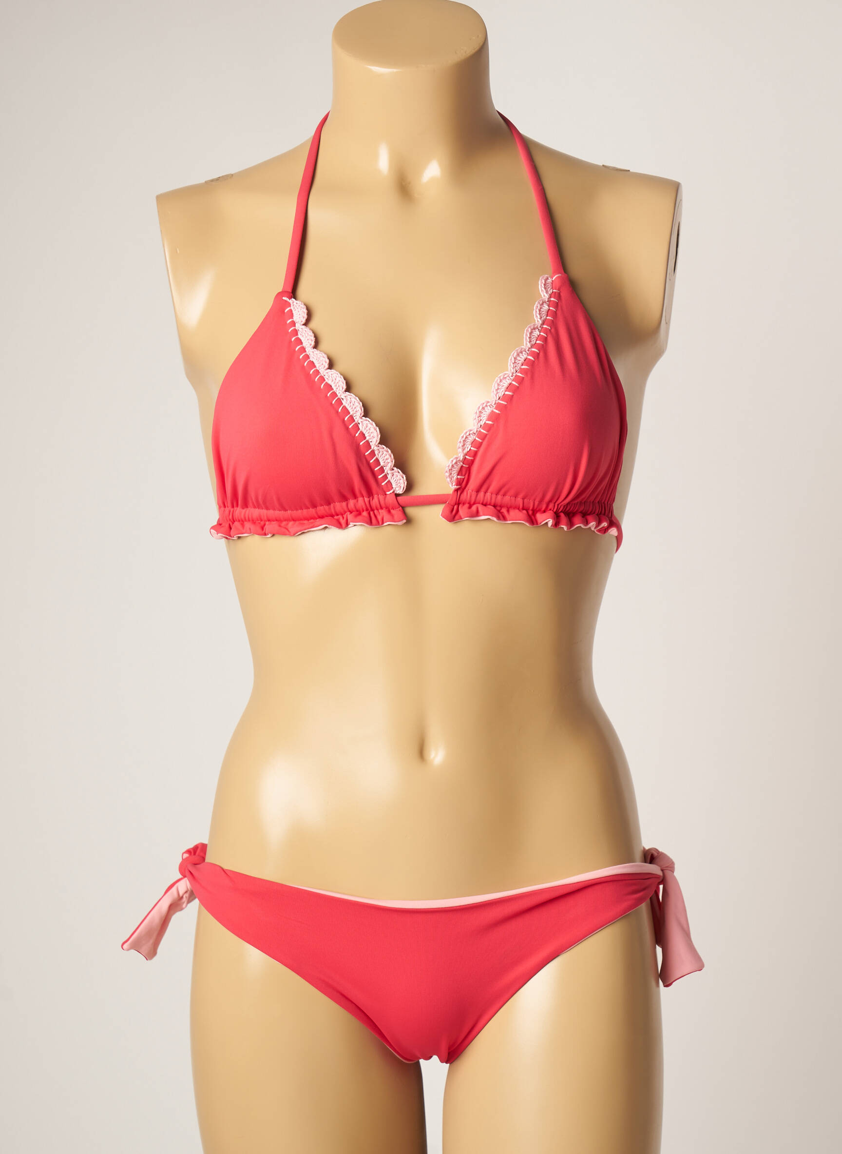 Costum De Baie Din Două Piese Domani Roz Top Triunghiuri