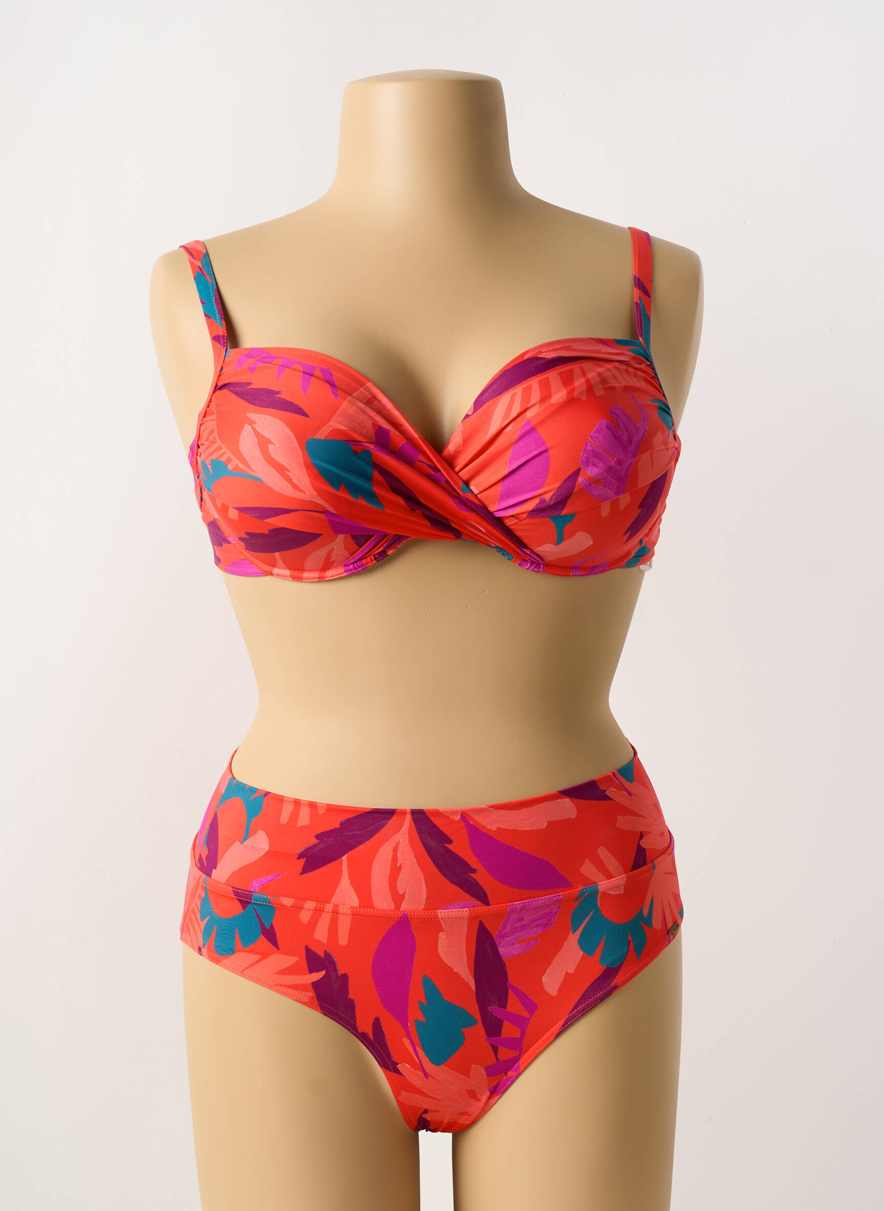 Costum De Baie Din Două Piese Livia Portocaliu Sutien Balconet Cu Decolteu Înalt