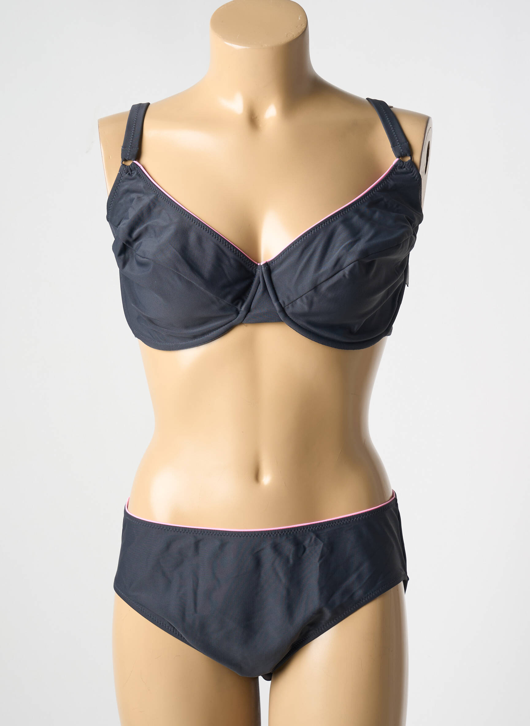 Costum De Baie Din Două Piese Rosa Faia Gri Sutien Balconet Cu Decolteu Înalt