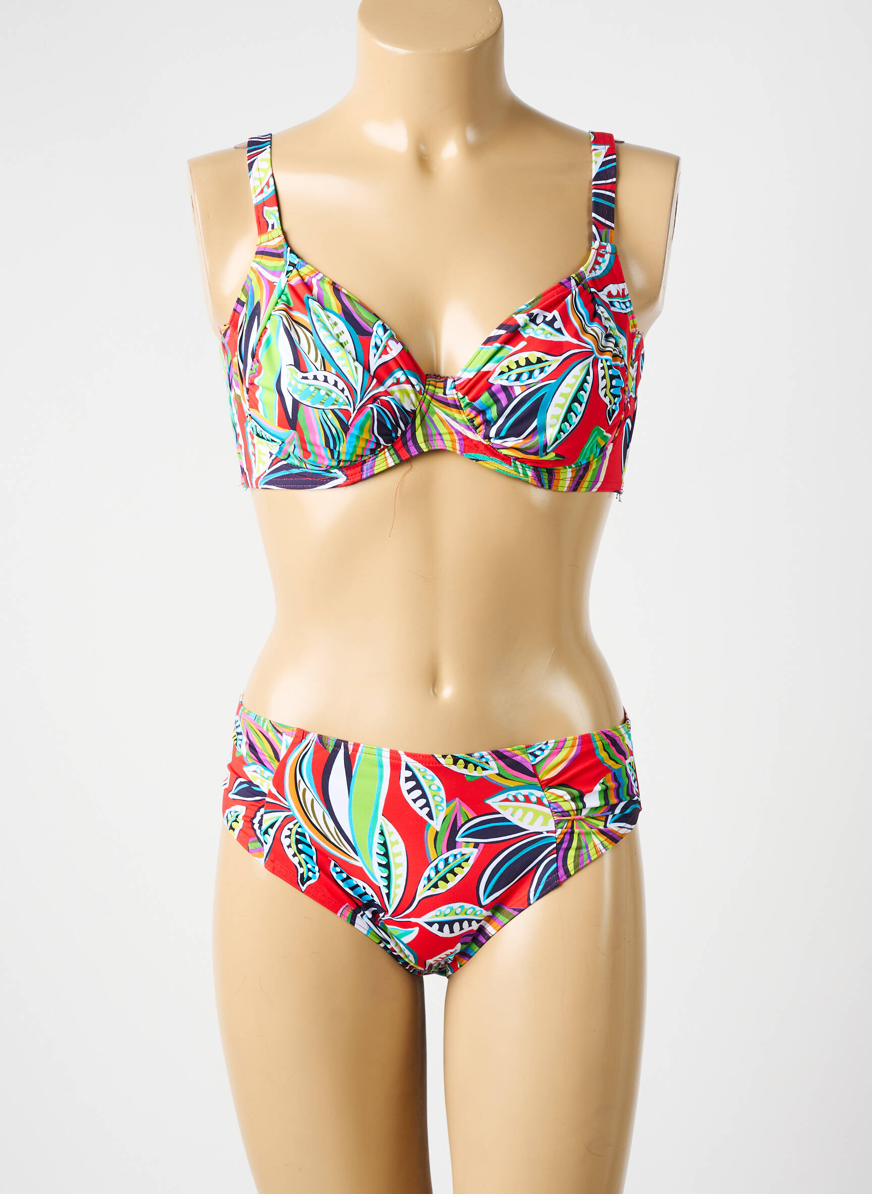 Costum De Baie Din Două Piese Rose Pomme Roșu Sutien Cupe Întregi Cu Decolteu Înalt