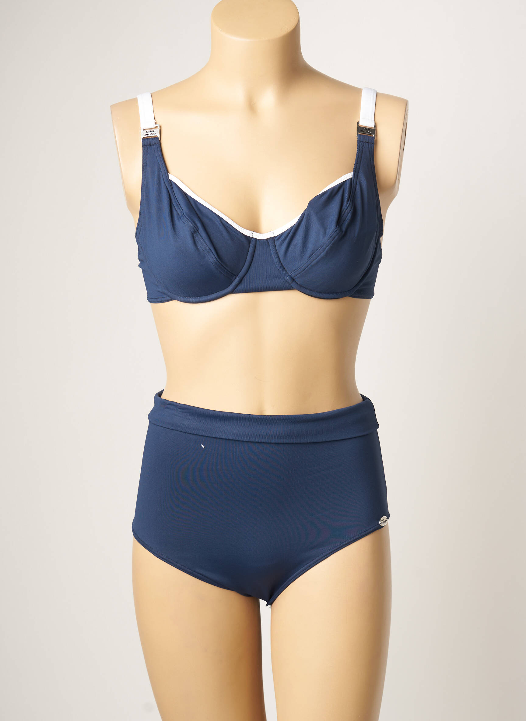 Costum De Baie Din Două Piese Sun Playa Albastru Sutien Cupe Întregi Cu Decolteu Înalt