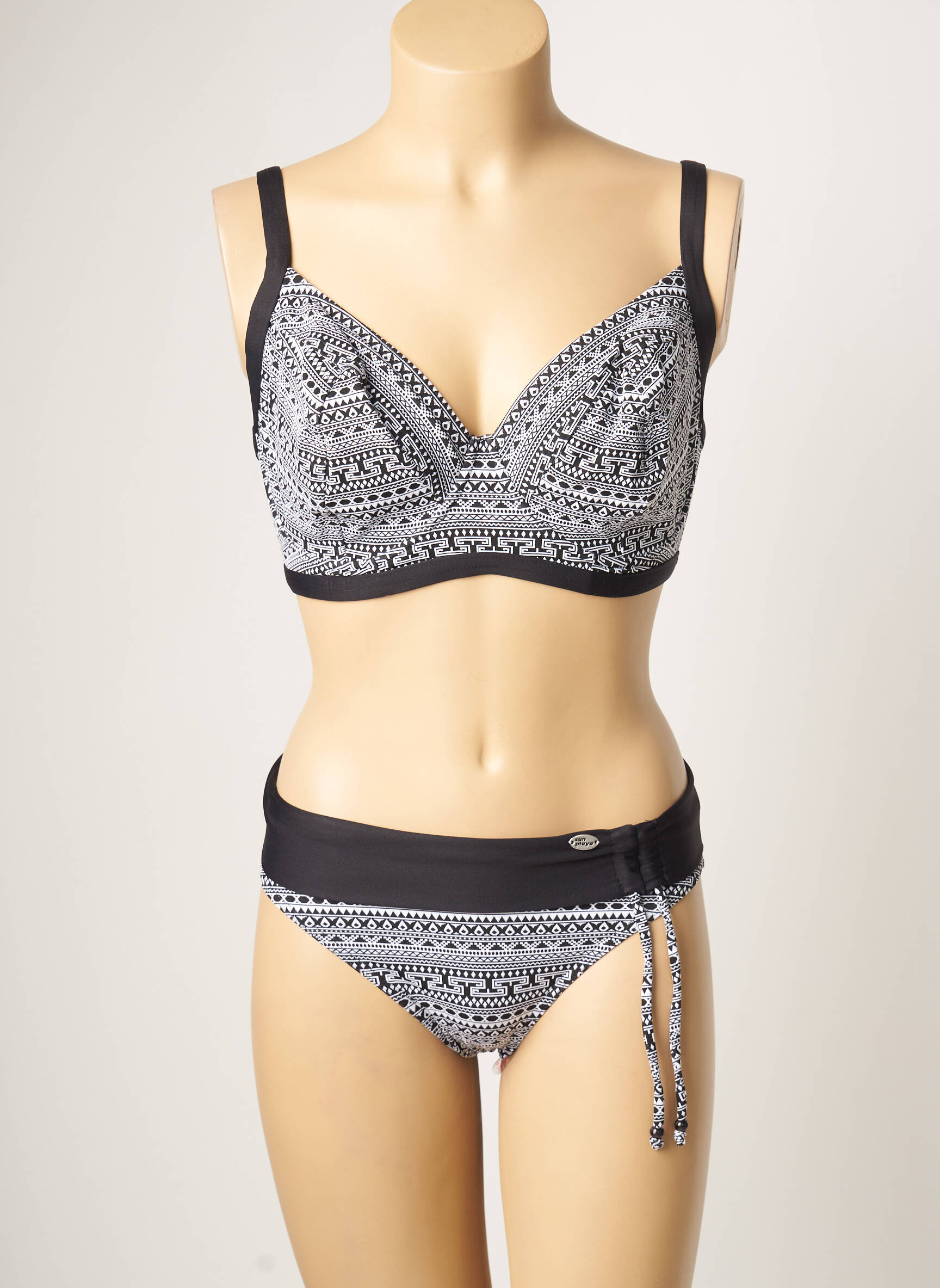 Costum De Baie Din Două Piese Sun Playa Negru Sutien Cupe Întregi Cu Decolteu Înalt