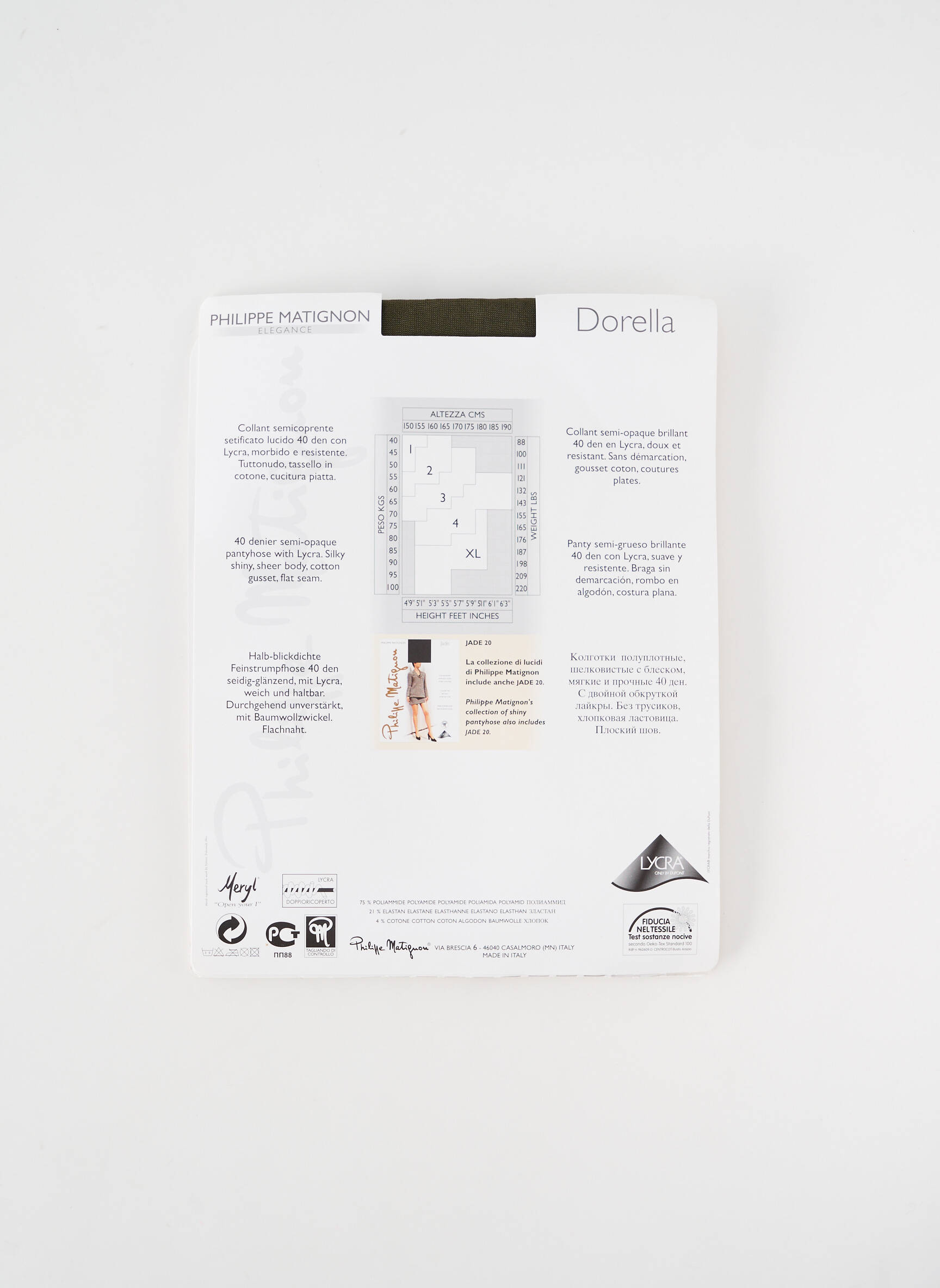- Detalii ale produsului : 75 % Poliamida, 21 % Elastan, 4 % Bumbac