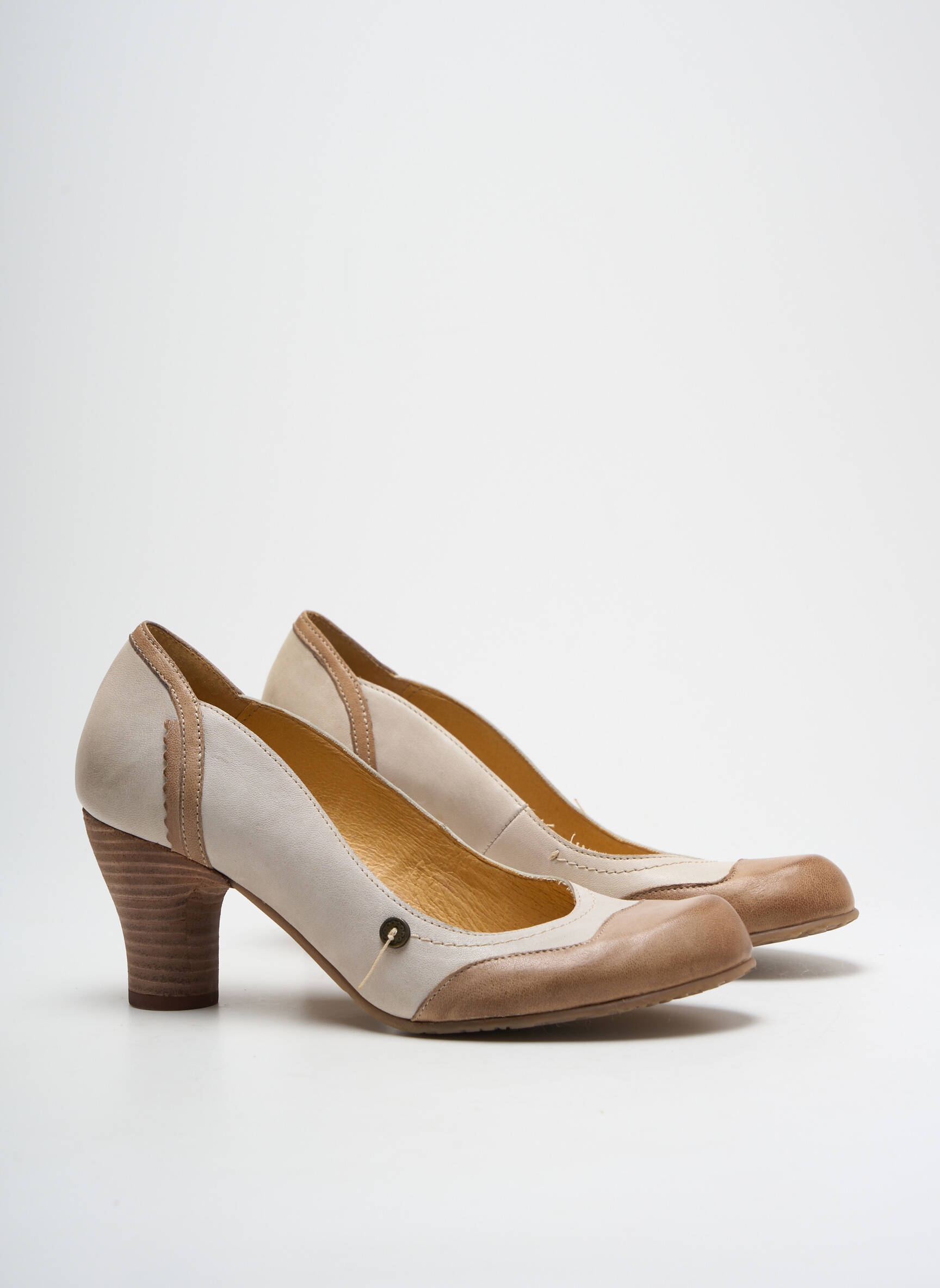 Pantofi Cu Toc Gold Button Bej Toc De 4 La 6 Cm
