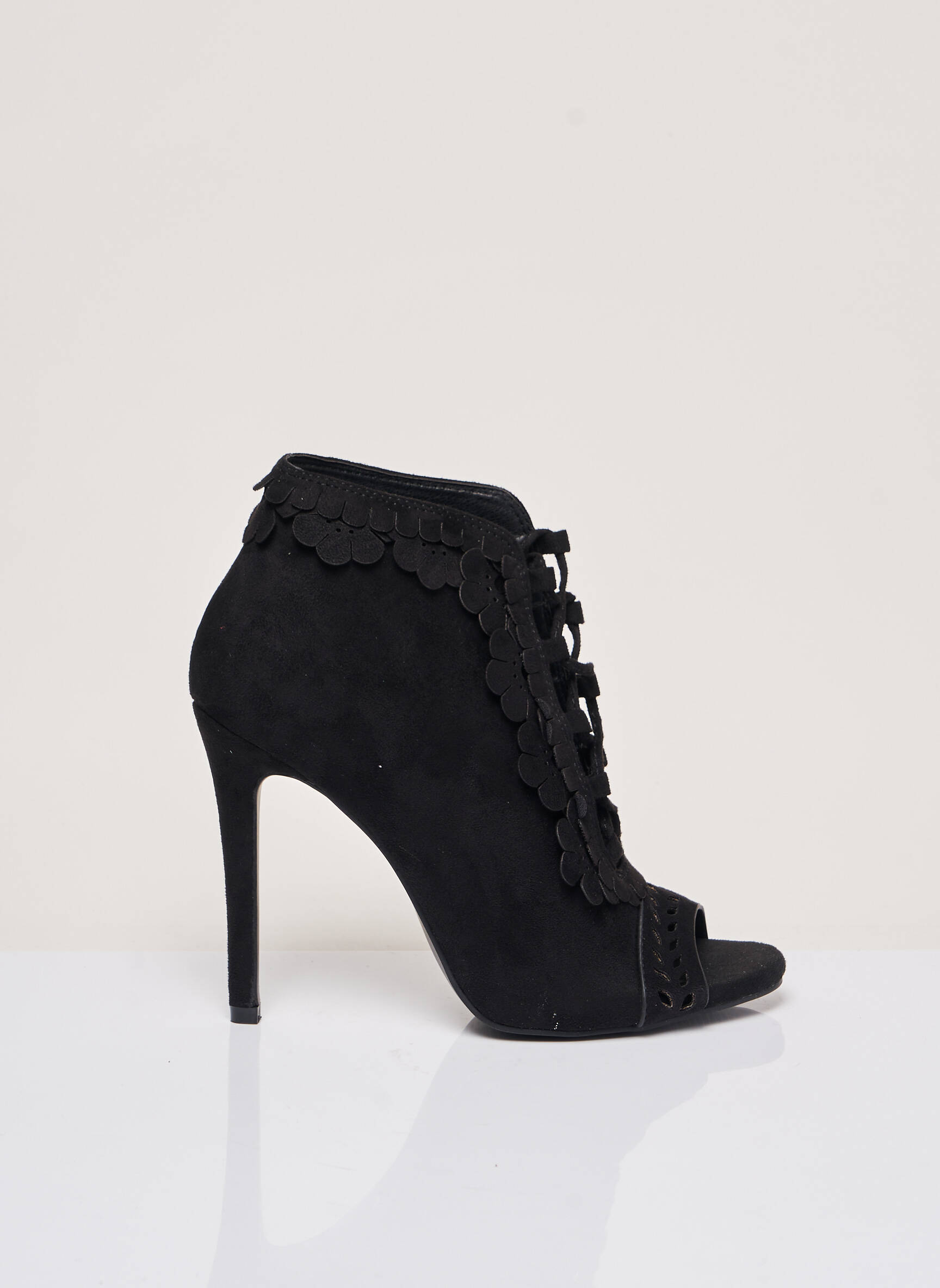 Sandale/pantofi Decupați Jeeini Negru Toc Înalt De 10cm Și Mai Mult