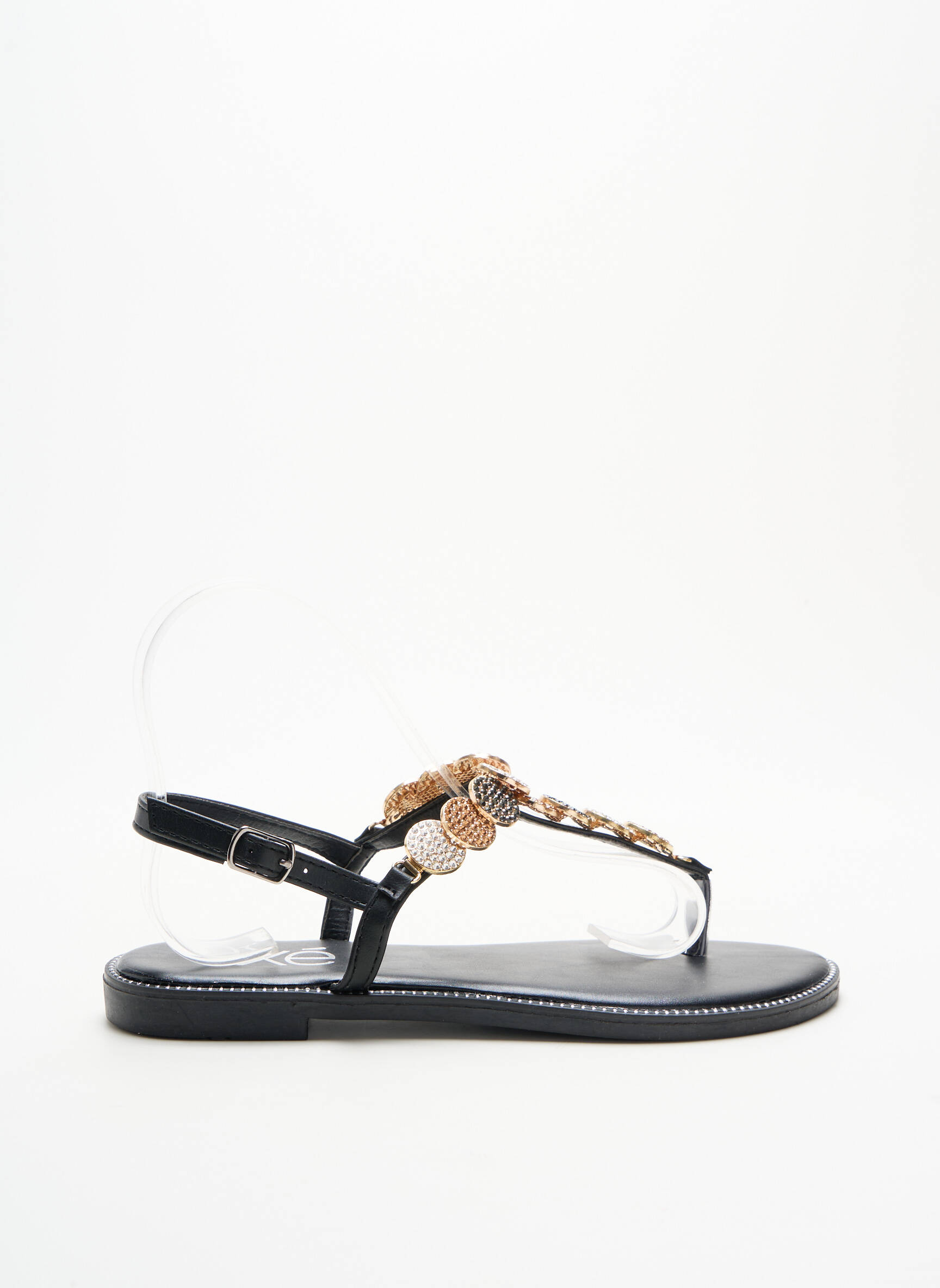 Șlapi Exé Negru Toc Plat Până La 3 Cm